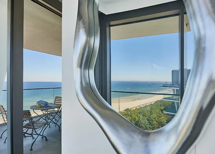 A Wave Resort - Top Floor Penthouse - Sea View önellátó felszereltséggel, többek között teakonyhával, valamint étkezővel várja a vendégeket. A Szczecin-Goleniow "Solidarnosc" repülőtér egy 55 perces autóúttal elérhető. Az apartman vendégei megmártózhatnak az úszómedencében.